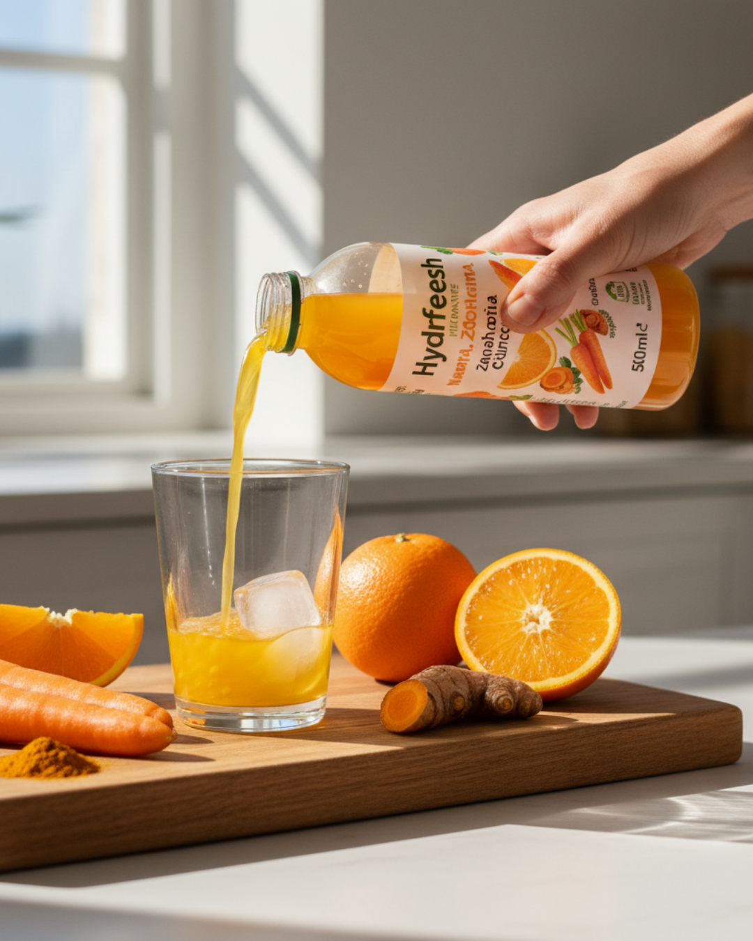Antiinflamatorio y Escudo Inmune. La Cúrcuma y las vitaminas de la zanahoria y naranja fortalecen las defensas y reducen la inflamación. Sin Azúcares Añadidos.